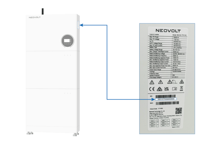 GivEnergy inverter serial number (SN) can be found on the right side of the unit.